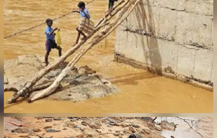 छत्तीसगढ़ के दंतेवाड़ा जिले में बाढ़ से 23 पुल टूटे, बच्चे जान जोखिम में डालकर स्कूल जा रहे