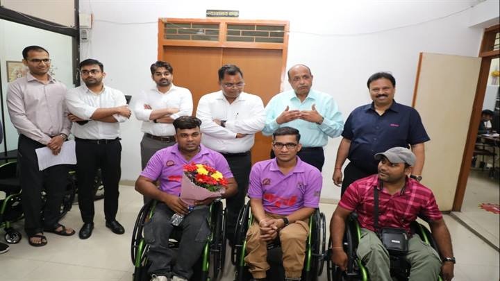 इंदौर, 30 सितम्बर । मध्य प्रदेश के इंदौर में दिव्यांग खिलाड़ियों को राष्ट्रीय स्तर के खेलों में बेहतर प्रदर्शन के लिए कलेक्टर शिवम वर्मा की पहल पर रेडक्रॉस निधि से विशेष तरह की व्हील चेयर की मदद की गई है। कलेक्टर वर्मा ने मंगलवार को कलेक्टर कार्यालय में इंदौर के राष्ट्रीय स्तर के पांच दिव्यांग खिलाड़ियों को विशेष तरह की व्हील चेयर वितरित की। उन्होंने खिलाड़ियों से चर्चा की, उनका स्वागत किया और आने वाली प्रतियोगिताओं में सर्वश्रेष्ठ प्रदर्शन की शुभकामनाएं दी। उन्होंने कहा कि खिलाड़ियों को हर तरह का सहयोग उपलब्ध कराया जाएगा। वे बेहतर प्रदर्शन करें तथा इंदौर का नाम राष्ट्रीय और विश्व मानचित्र पर अंकित करें।