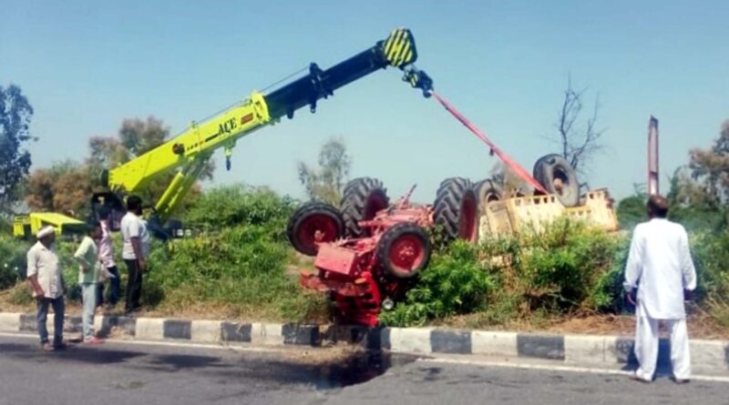 ने मंगलवार दोपहर को आगे चल रहे ट्रैक्टर-ट्रॉली को टकर मार दी ट्रैक्टर डिवाइडर पर